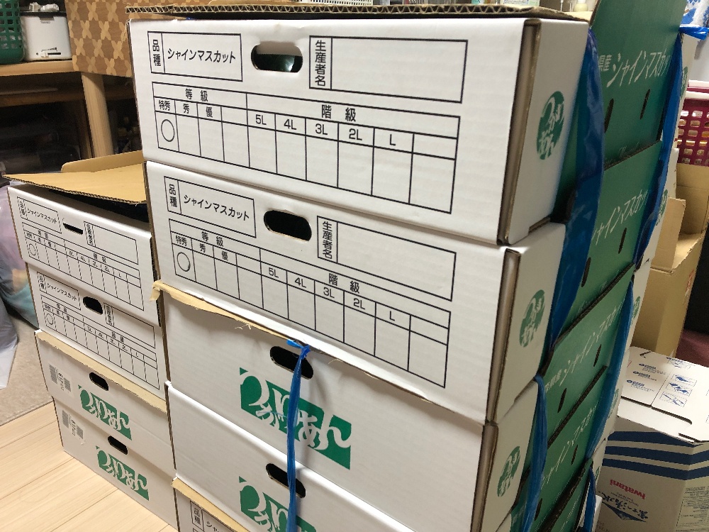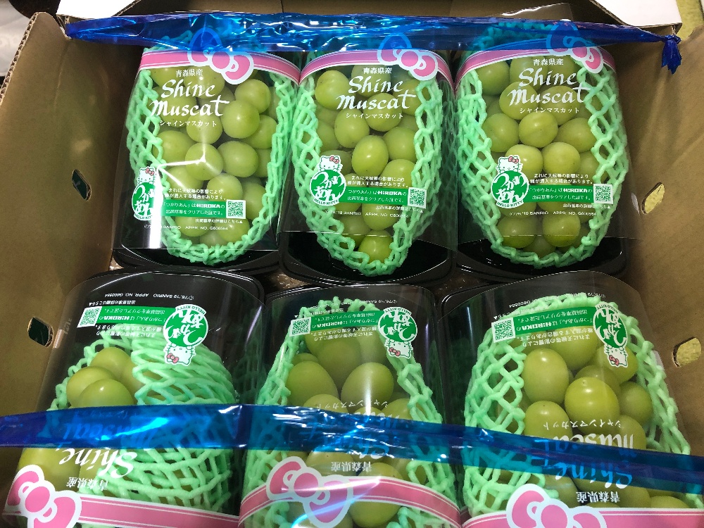 こんばんは🎑舘山です👋今年もシャインマスカット🍇の時期となりましたねー🙏✨今年の青森は暑くて☀️水不足💧でとなかなか栽培が難しかったようですが💦立派なシャインマスカット🍇が届きました✨日頃お世話になっているお客さんや業者さん親しい方々へ感謝のお返しです🙏✨✨
